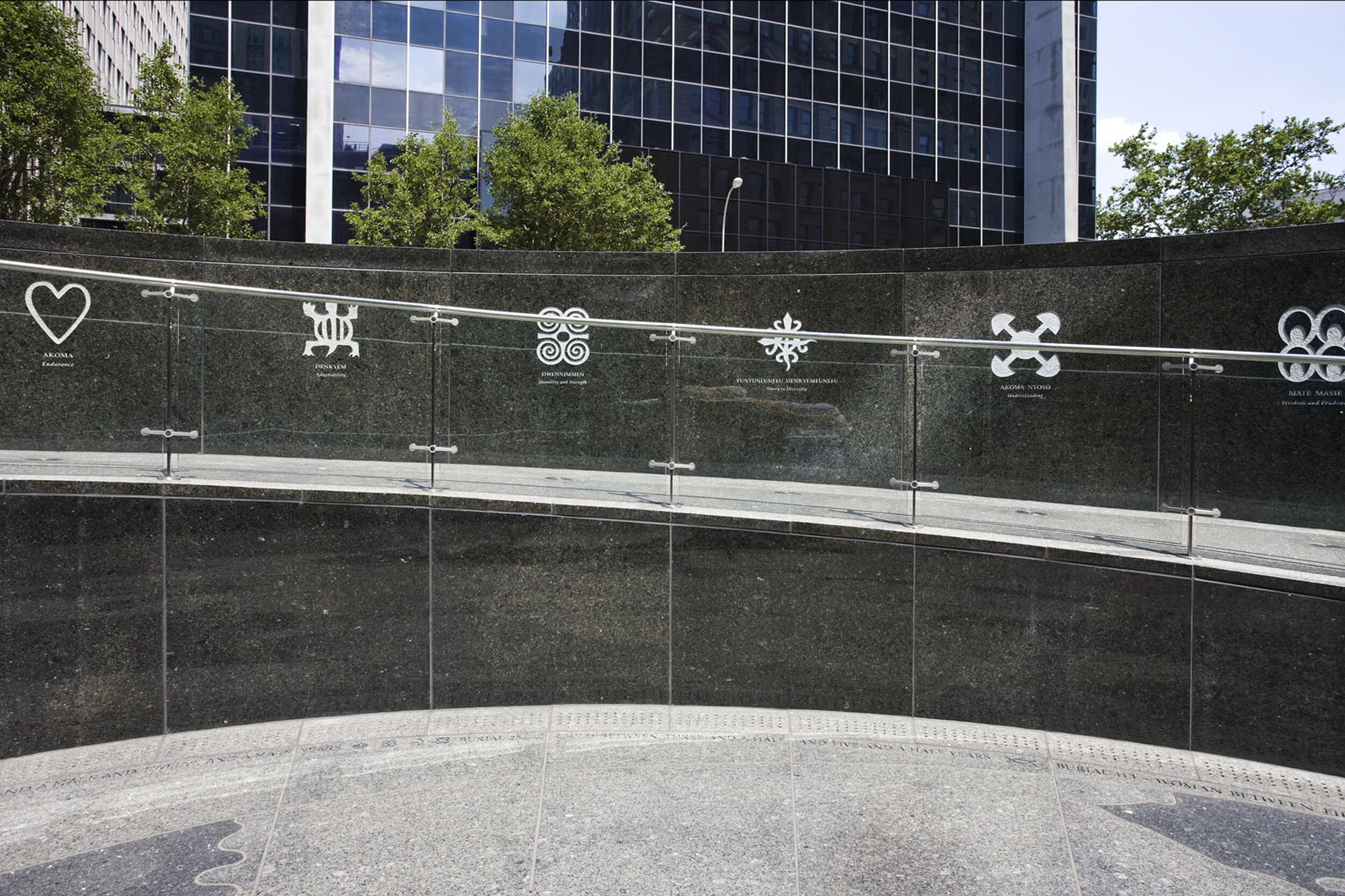 It was in May 1991, while the US General Services Administration was preparing to build a federal office tower in Lower Manhattan at Broadway between Duane and Reade Streets, that the first human remains from an 18th-century African burial ground were accidentally uncovered. Construction was subsequently halted and the resulting archaeological excavation unearthed more than 400 skeletal remains of men, women, and children, along with hundreds of burial artifacts. We commemorate this African Burial Ground with the “Ancestral Libation Chamber”. Through Seven Elements, the Ancestral Chamber serves to physically, spiritually, ritualistically, and psychologically define the location where the historic re-interment of remains and artifacts of 419 Africans has taken place. It will also serve to acknowledge the site as a “Sacred Place” where an estimated 20,000 remains of Africans are currently buried. The African Burial Ground is widely considered to be one of America’s most significant archaeological finds of the 20th century. In 1993, the African Burial Ground was designated a National Historic Landmark and in 2006 the African Burial Ground Site was designated a National Monument.